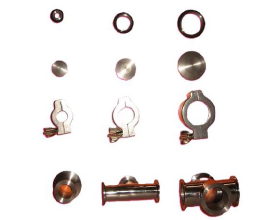 1. Stright Adapter 2. Tee 3. 4 Way Cross 4. Clamps 5. 'O' Ring Holders 6. Blank Flanges 7. Claw Clamps